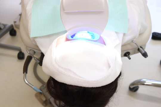 ホワイトニングを促進する特殊な光を歯に照射します。